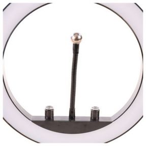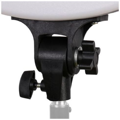 Dankzij de smartphonehouder maak je mooie handsfree opnames. De houder is geschikt voor telefoons met een breedte tussen de 53 en 72 mm. De lamp heeft aan de onderzijde een spigotadapter waarmee je hem bevestigt op het meegeleverde tafelstatief. De minimale statiefhoogte is 31 cm, de maximale 47,5 cm. Het mechanisme van de spigotadapter zorgt ervoor dat je de lamp 360 graden kunt draaien en kunt kantelen. Zo bepaal je zelf de belichtingshoek.